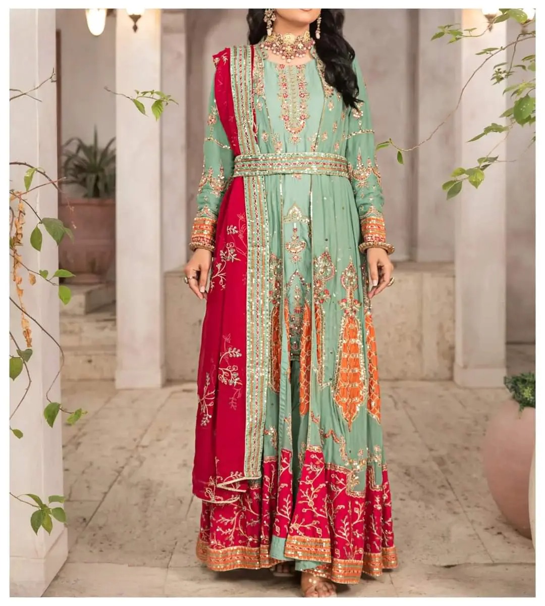 Work technique: Embroidery with Zari & Sequins, Paired with a classically draped