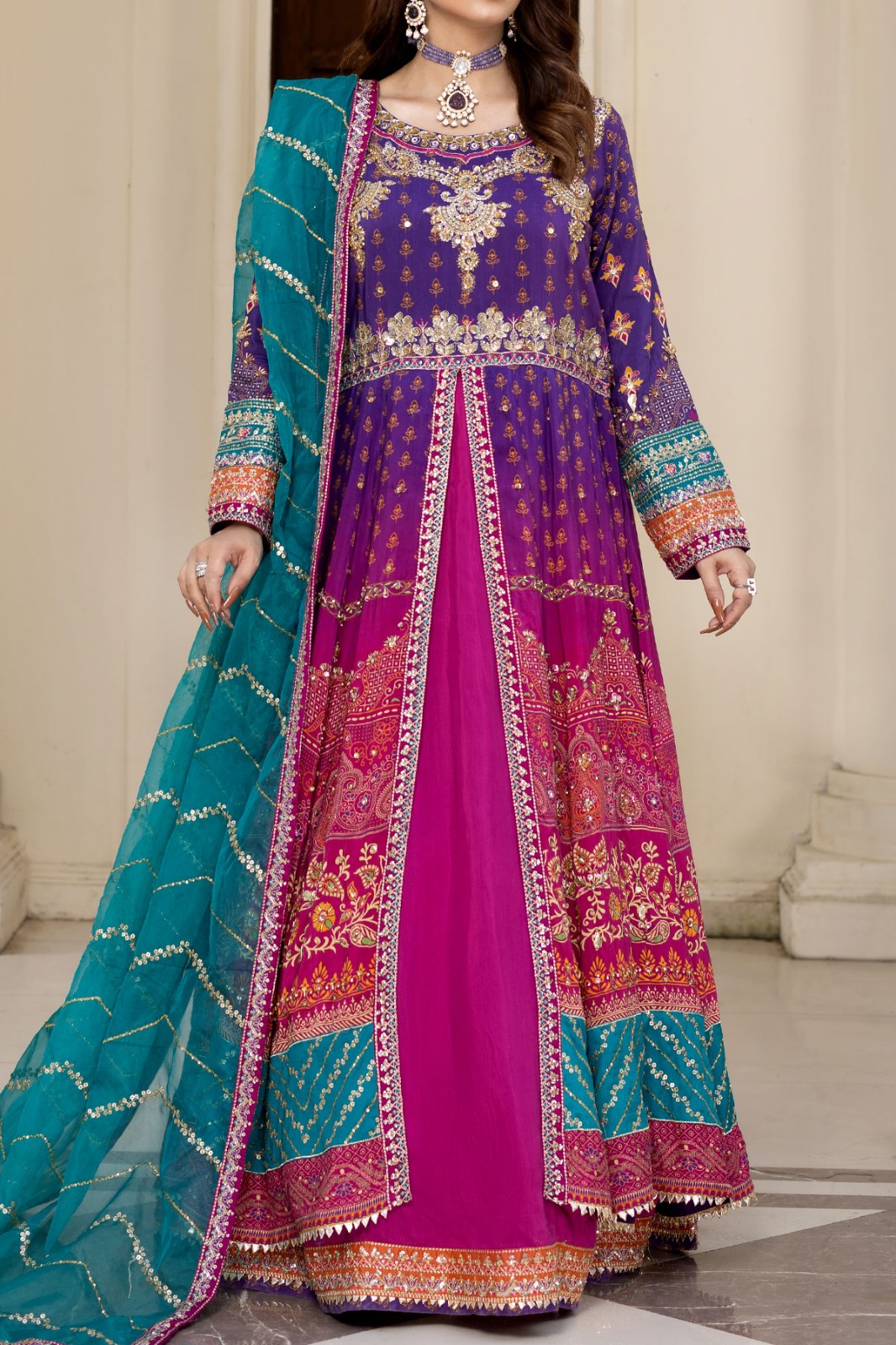 Work technique: Embroidery with Zari & Sequins, Paired with a classically drapedPattern: Maxi