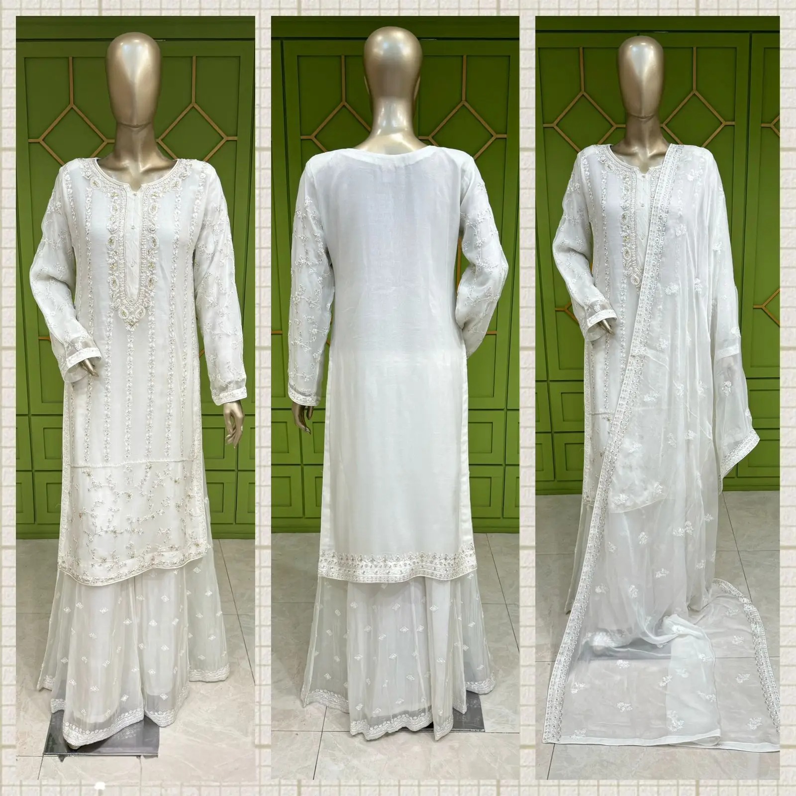 1: Shirt: Chiffon2: Gharara: Chiffon3: Dupatta: Chiffon