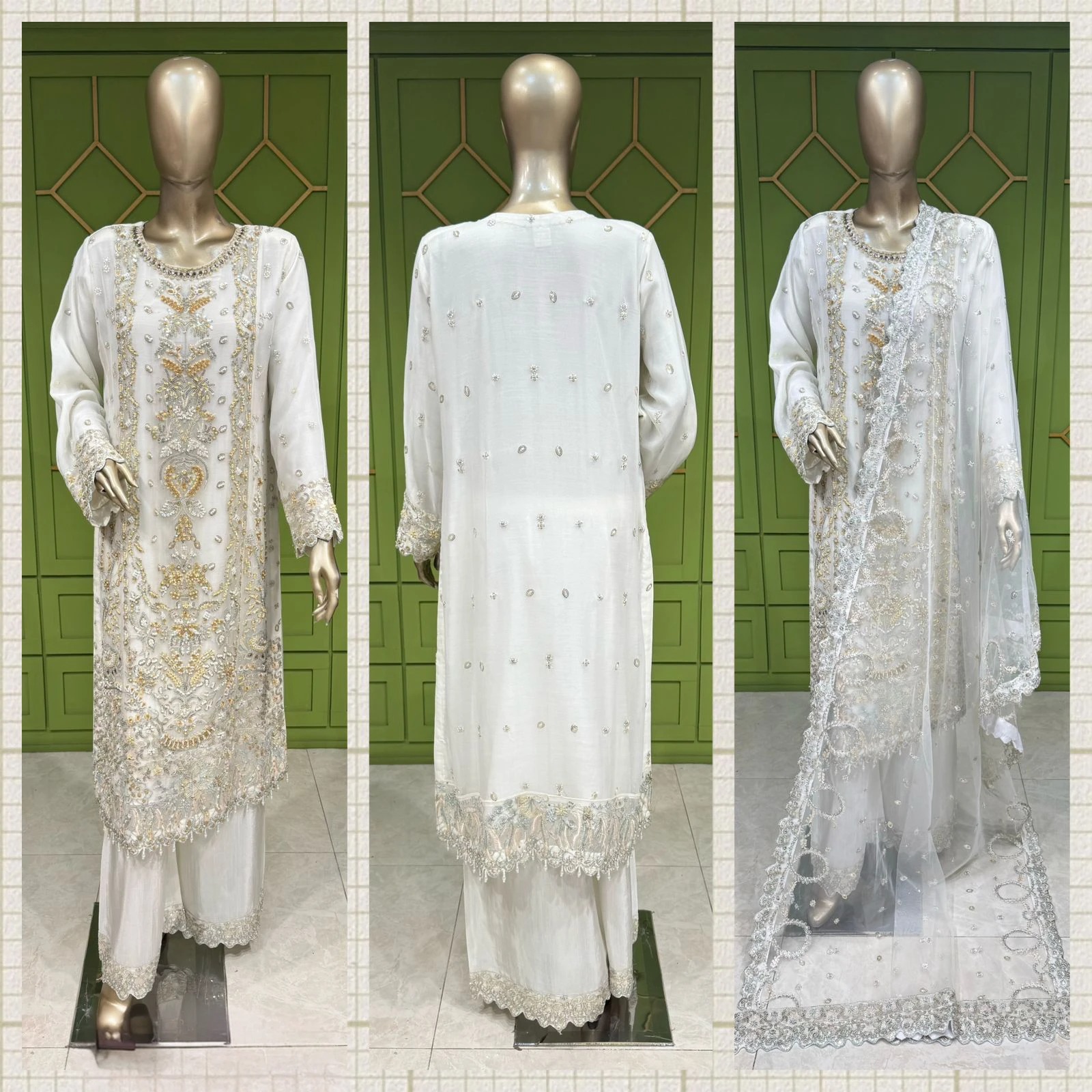 1: Shirt: Chiffon2: Trouser: Viscose3: Dupatta: Chiffon