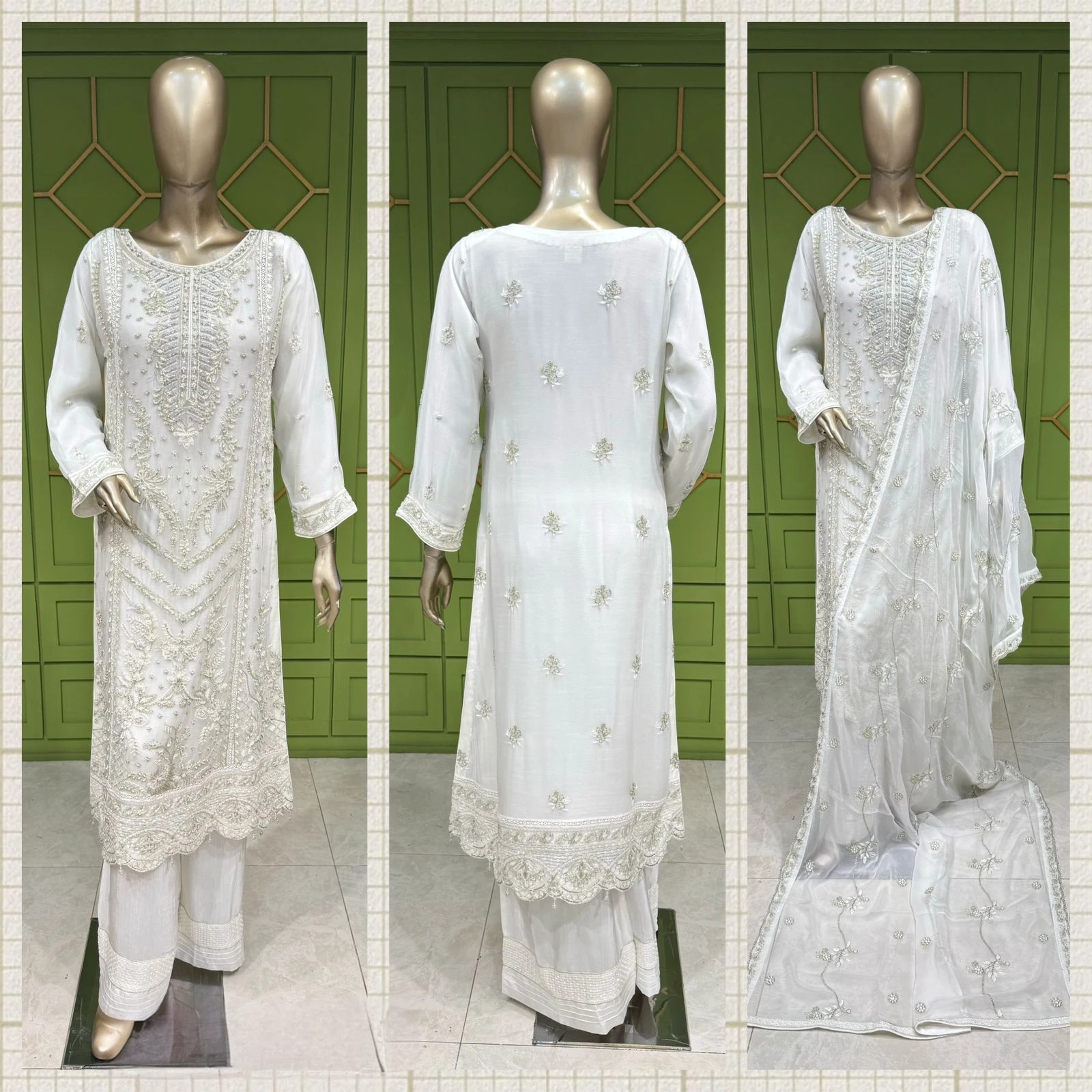 1: Shirt: Chiffon2: Trouser: Viscose3: Dupatta: Chiffon